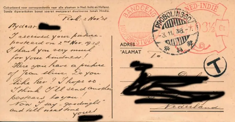 Ansichtkaart uit Probolinggo, Indonesië (stempel 03-11-1938).